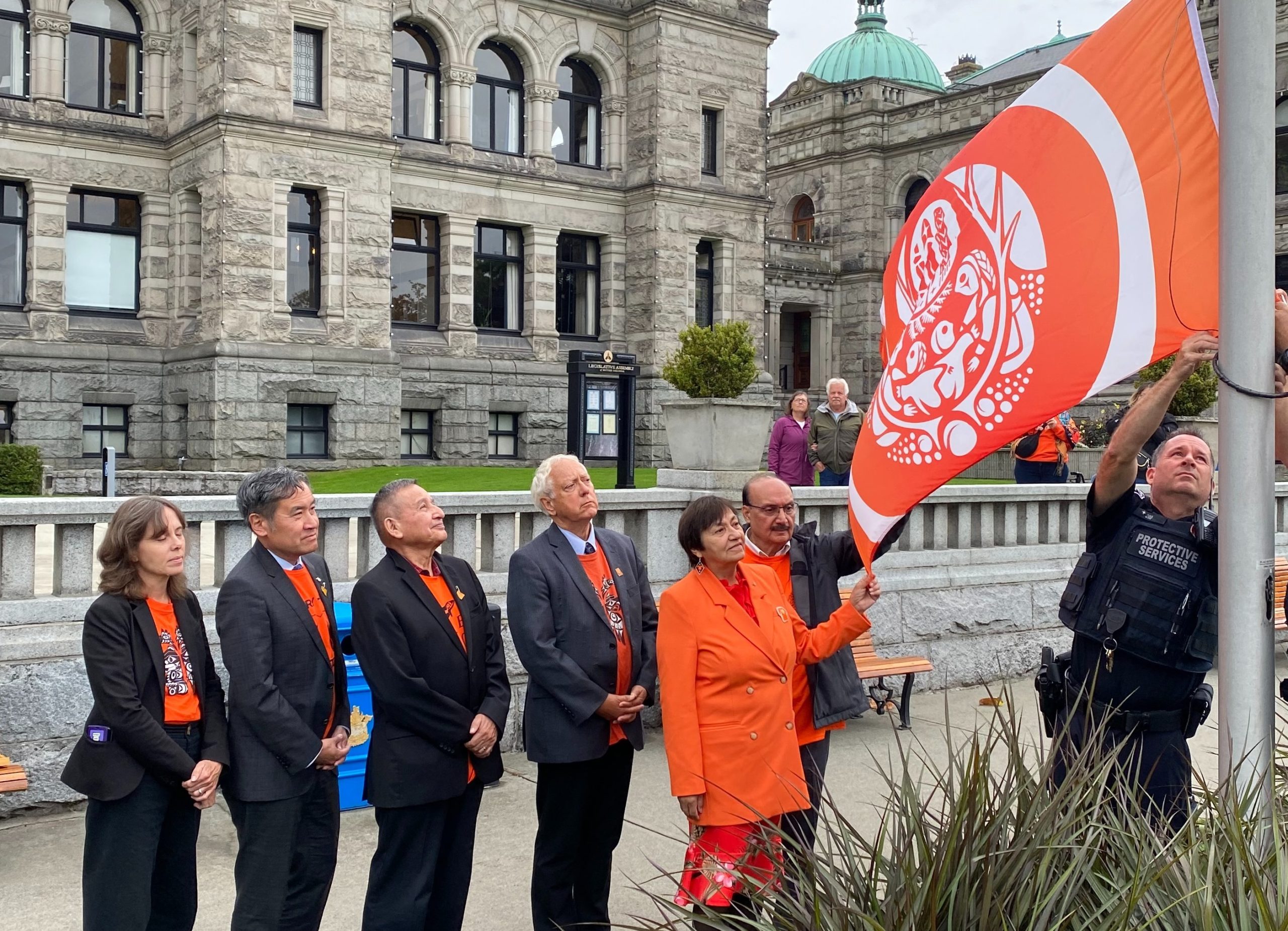 Victoria: An orange and white flag was raised today at the British Columbia legislature, honouring residential school survivors and remembering children who never came home.