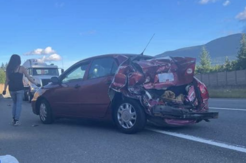 Police, Fire and EHS responded. At the scene was a red Toyota Corolla with significant rear end damage. The driver of the Corolla, an 18-year-old woman, was transported to the Nanaimo hospital with serious but non-life threatening injuries. Her 19-year-old male passenger was not injured.
