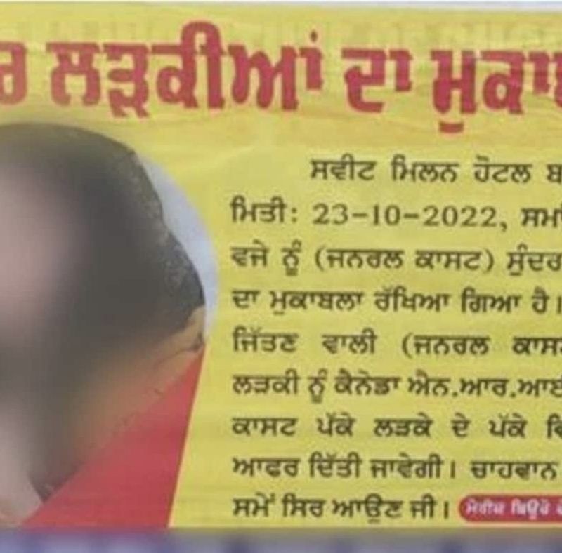 Beauty contest ad offers Canadian groom as prize, two booked in Punjab’s Bathinda Punjab Beauty contest ad offers Canadian groom as prize, two booked in Punjab’s Bathinda