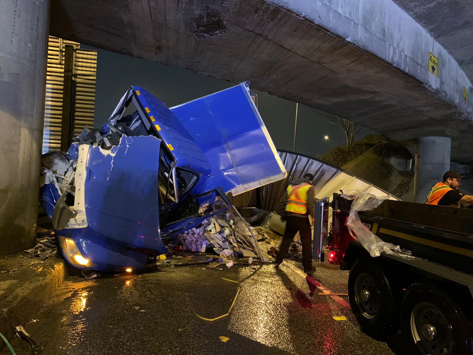 Shortly after 4:00 a.m. this morning, North Vancouver RCMP responded to a collision in the Westbound lanes of Hwy 1 at the Fern Street overpass.