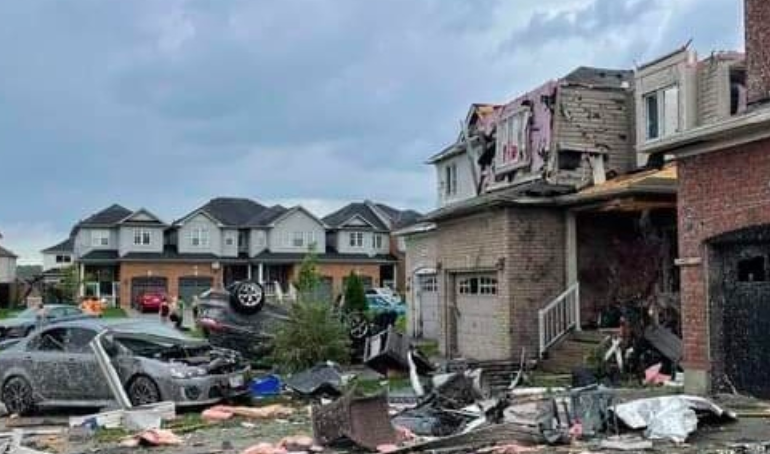 Authorities on the scene say it looks like a ”catastrophic” war zone. Damage is extensive after a tornado-ravaged Barrie, Ontario. Eight people have been hurt, four seriously.